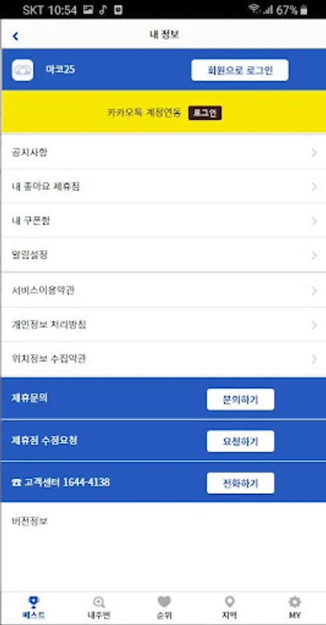 - 마이 : 회원가입, 환경 설정 등