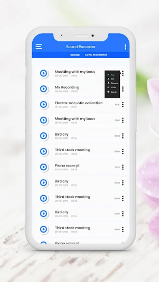 - Rename and delete your recording right from the app.