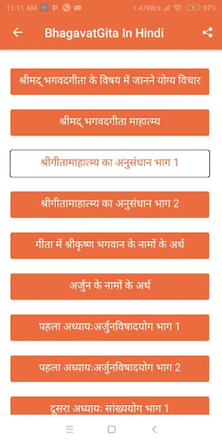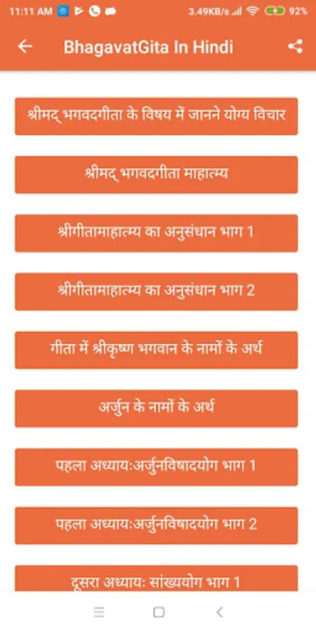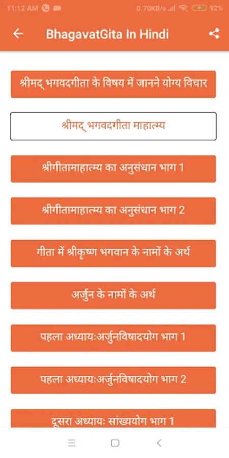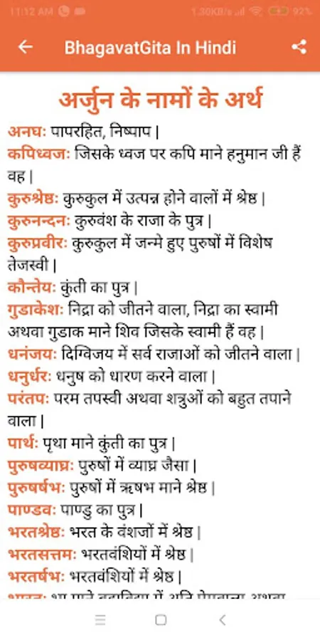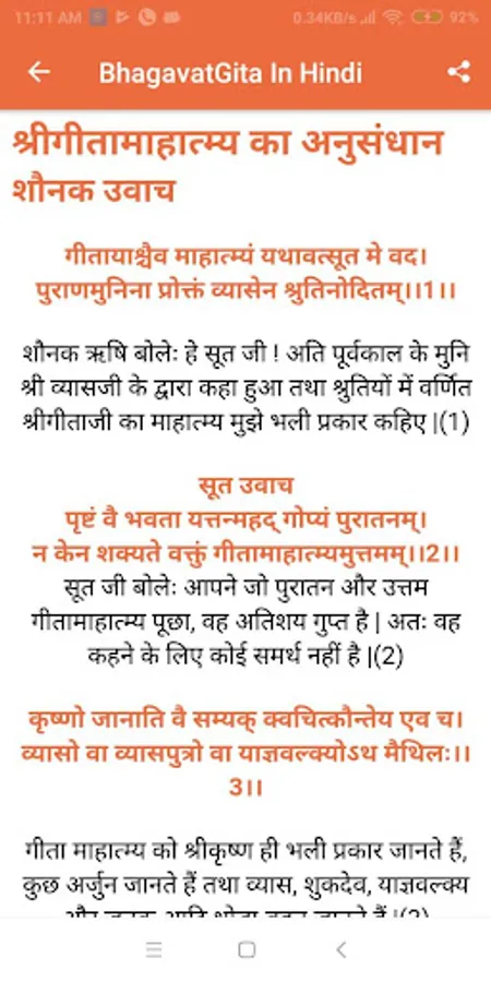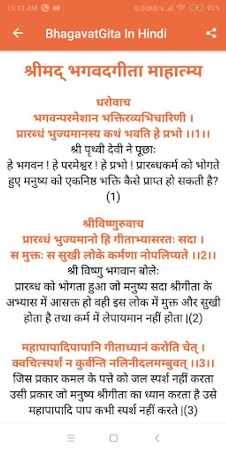 • Share app easily send your favorite Bhagavad Gita shloka / verse to your friends