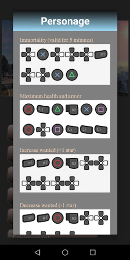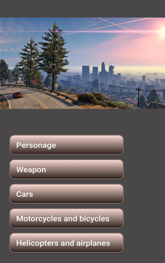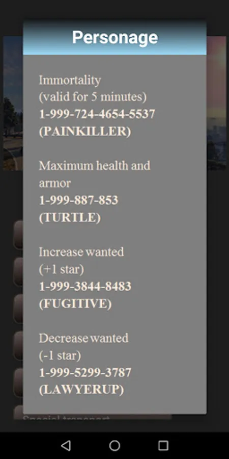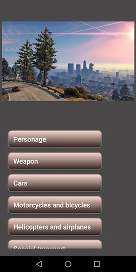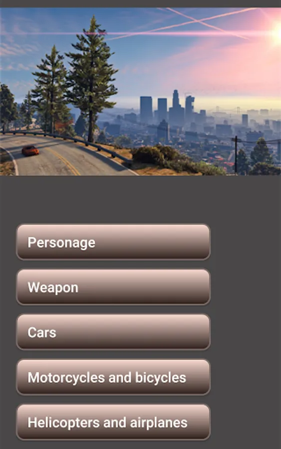 The application contains cheat codes for the game 5th part of the grand car theft game for different platforms.