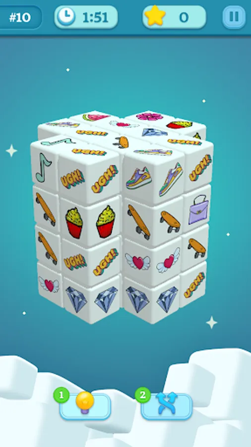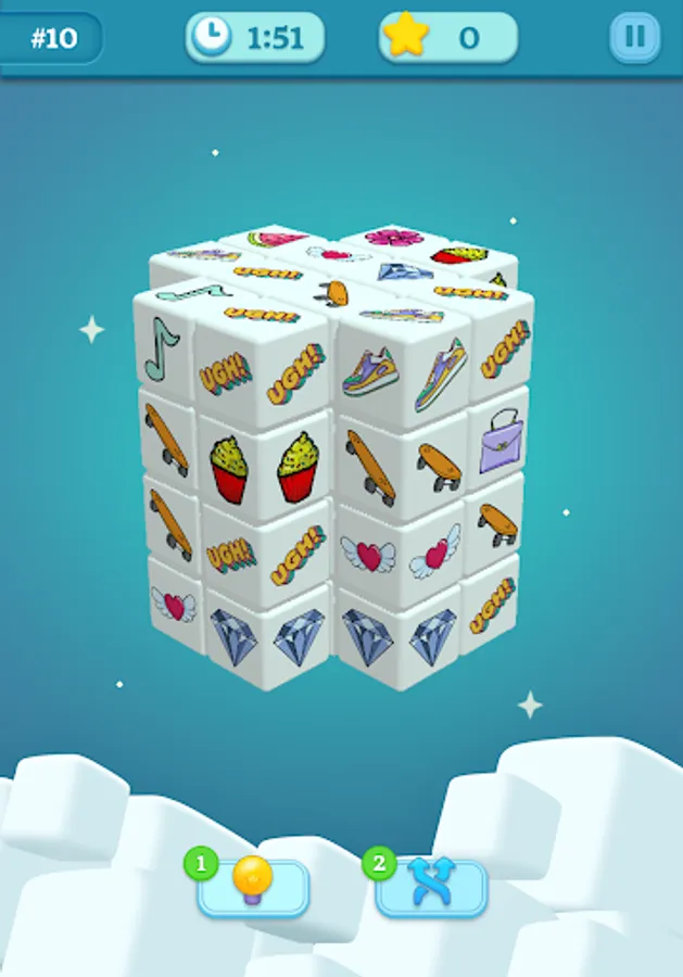 Rotate the 3D cube, find two identical tiles to complete the level.