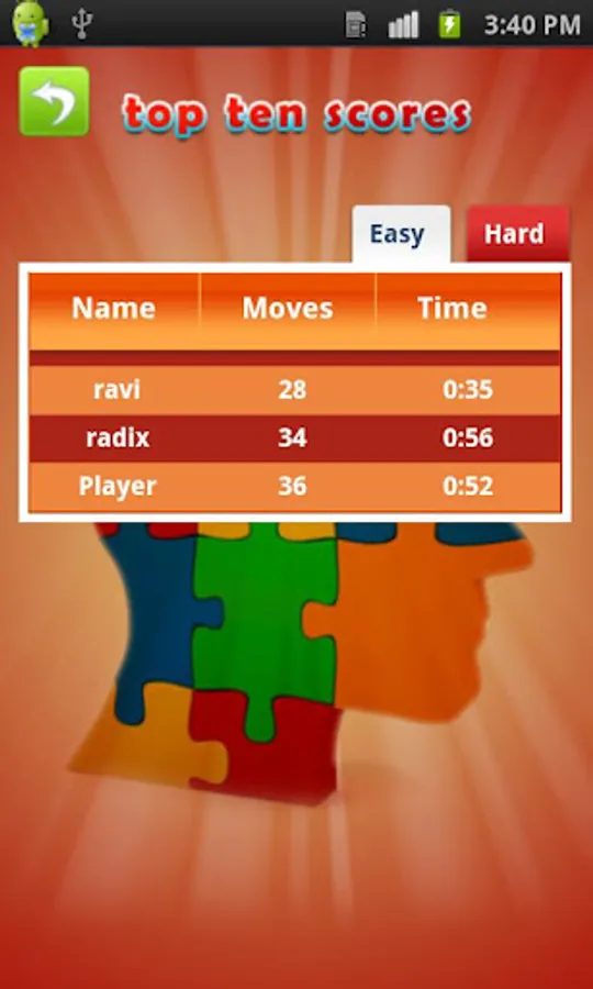It is a matching pair game having two levels of complexities i.e. Easy and Hard.