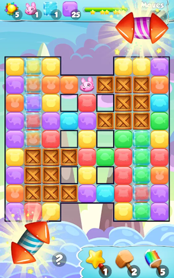 tap on 5 or more and get a rocket block buster that will clear a whole row of toy blocks.
