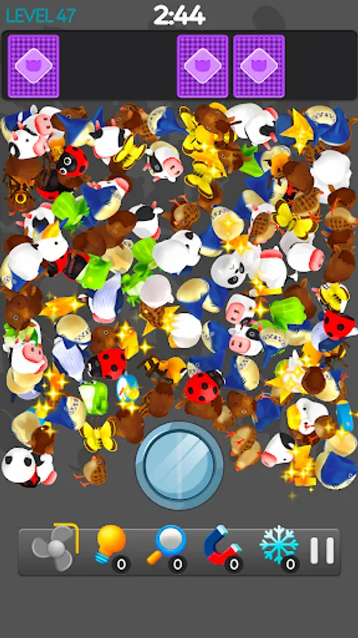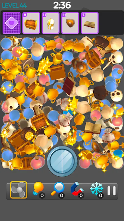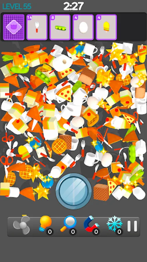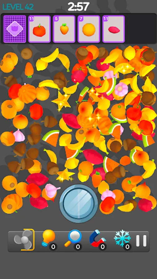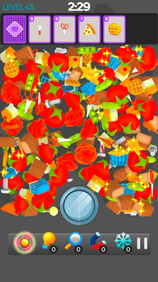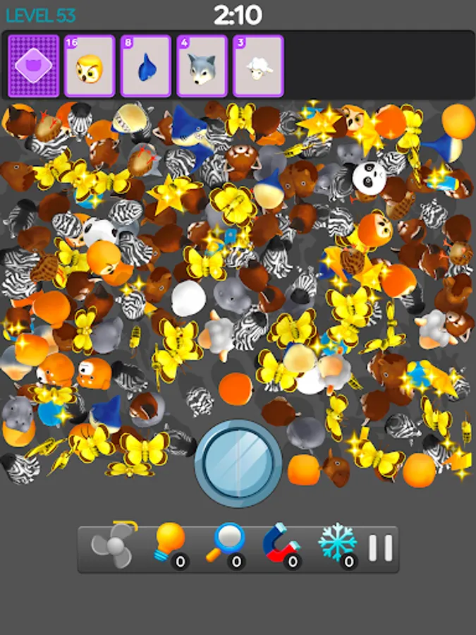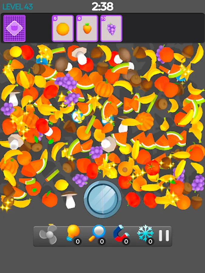 ✓ Keep sorting and matching objects until you clear all tiles from the screen