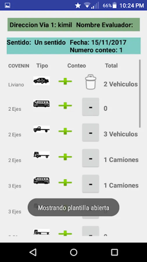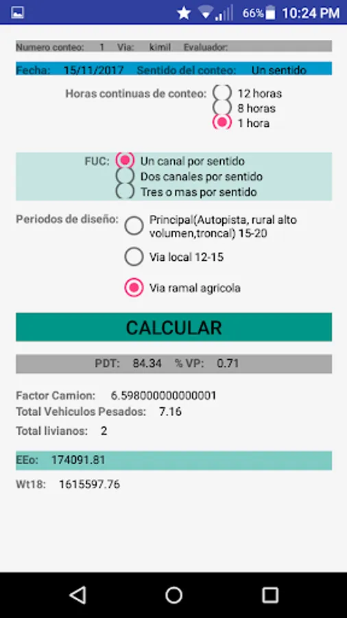 Vehicular application for field count, save count sheets, insert sheets manually to then calculate, Factor Calculate Truck, WT18, EEO. civil engineering, UTP Socopo Barinas