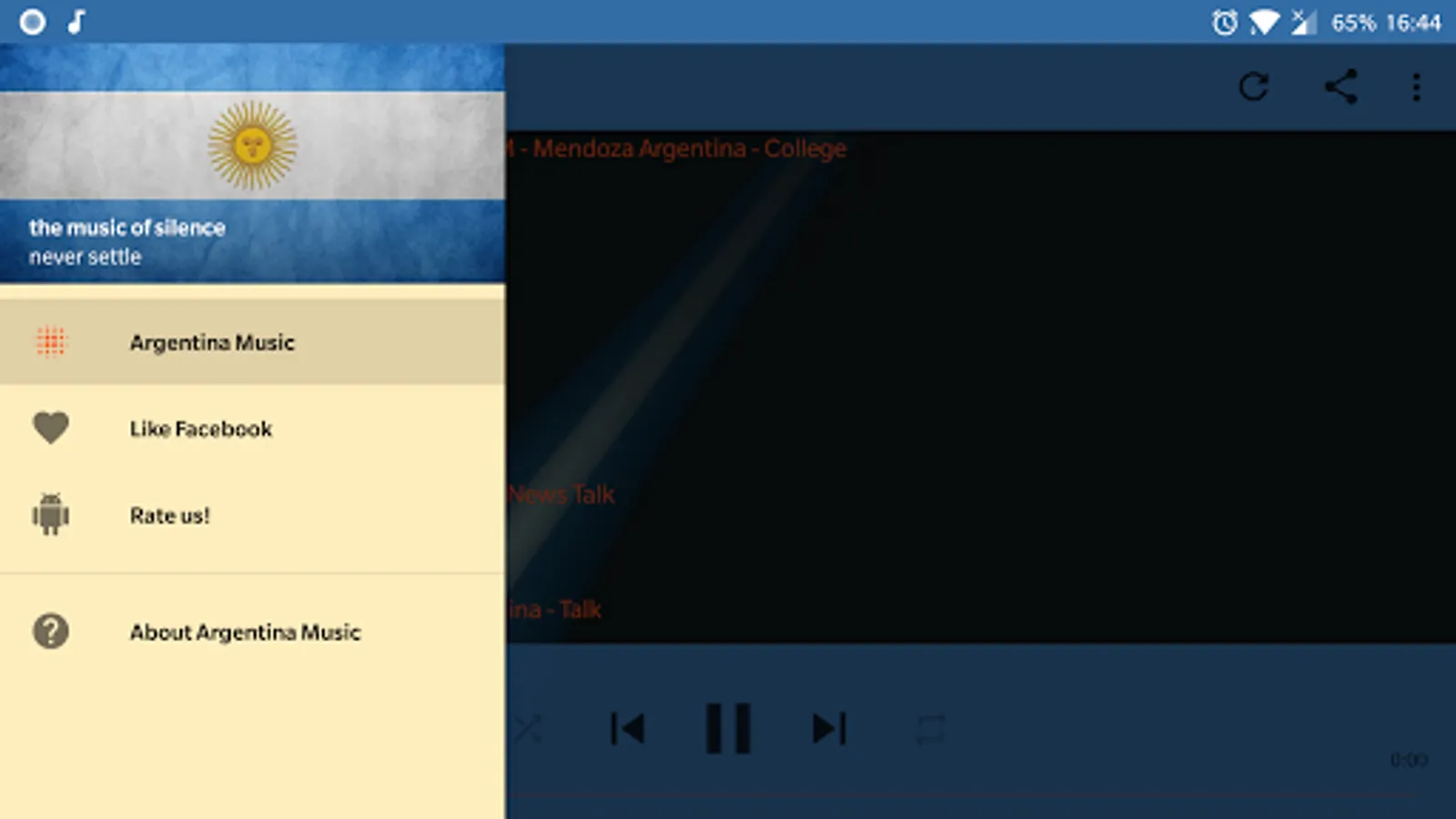 Listen to the best radio stations of the Argentina in our application. You can choose from sports, news, music and other radio stations.