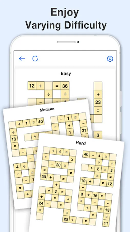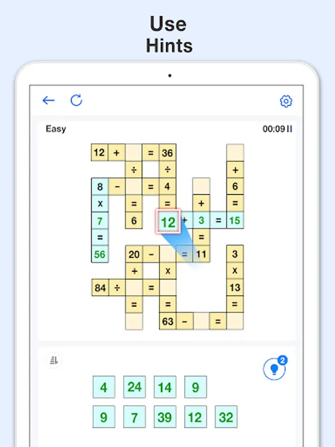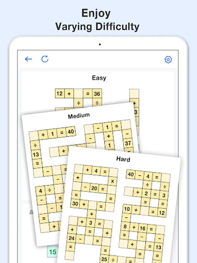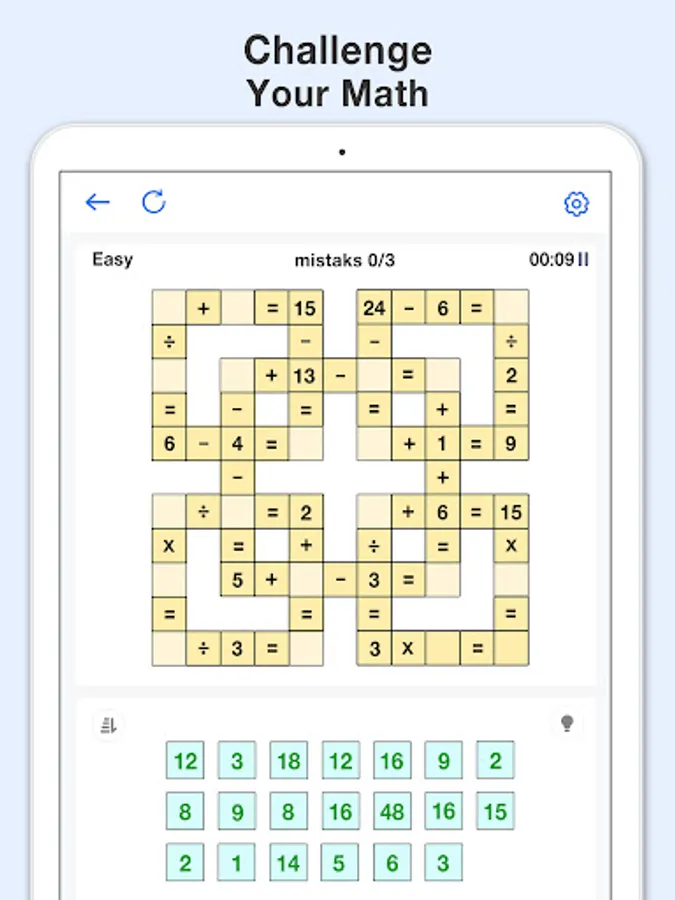 Math Crossword - Cross Math Puzzle is an addictive cross math puzzle game. You get a variety of levels and difficulty settings every day to train your brain. It's a cross math game for your brain, math skills, logical thinking, memory and also a good time killer.