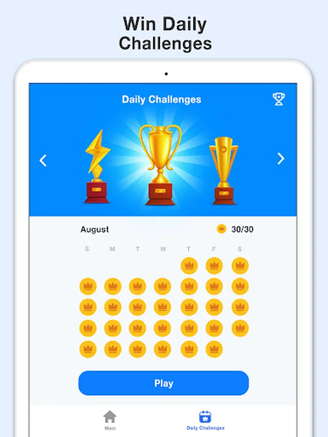 2. Daily Challenges, play every day and complete daily challenges for a given month to win unique trophies.