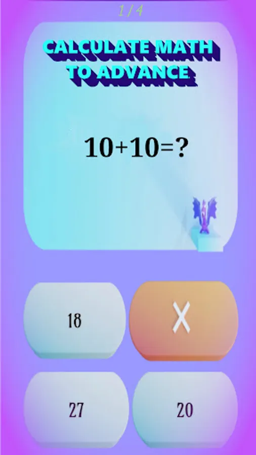 Use math skills to advance in the game. The game adjusts the math difficulty progression to match the players skill level. The game includes addition, subtraction, multiplication, division and puzzles.