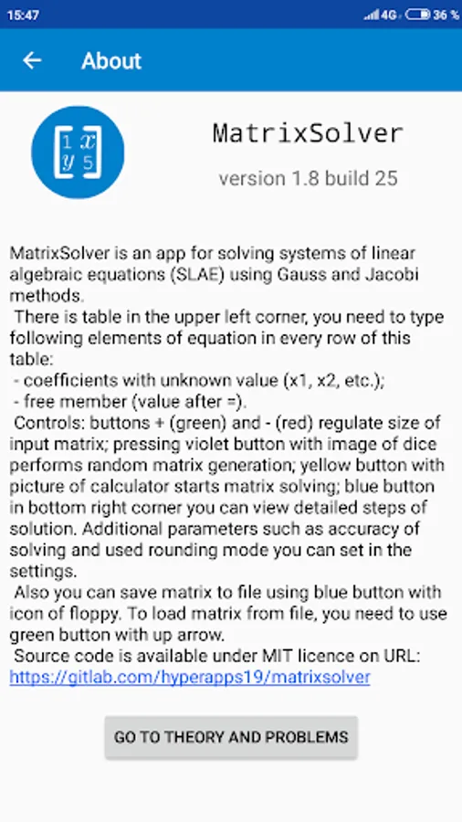 MatrixSolver is an educational application for solving linear algebraic equation (SLAE) systems.