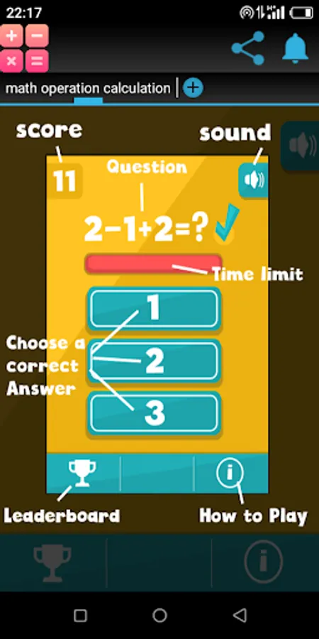 the user is called upon to respond to the operations of addition and subtraction in a well-determined instant otherwise the game closes and the score reached is recorded for each player if he introduces his name of course ..... a purely mathematical game ...