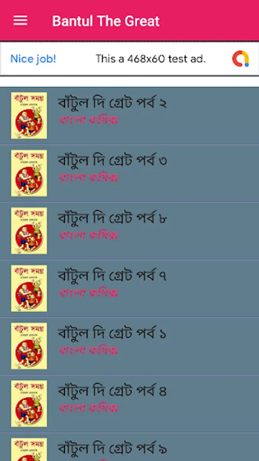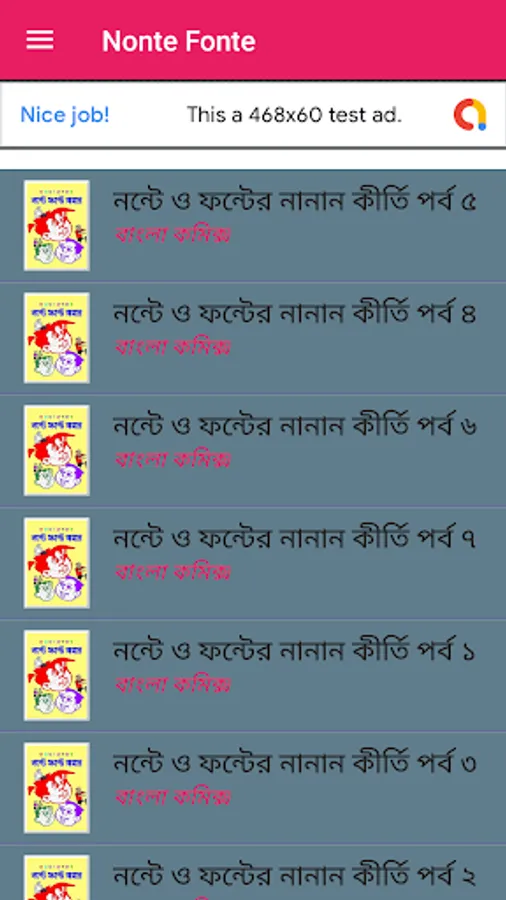 Bengali Comics is a free mobile application for reading comics which are available in public domain.This app features the most popular and favorite characters of Bengali literature consisting of Handa Bhonda, Nonte Fonte, Bantul The Great,Tintin,Chacha Choudhury, Bahadur Beral, Billu,Pinki,Romon Asterix and more.You will experience the great Mr.Narayan Debnath collections like never before.