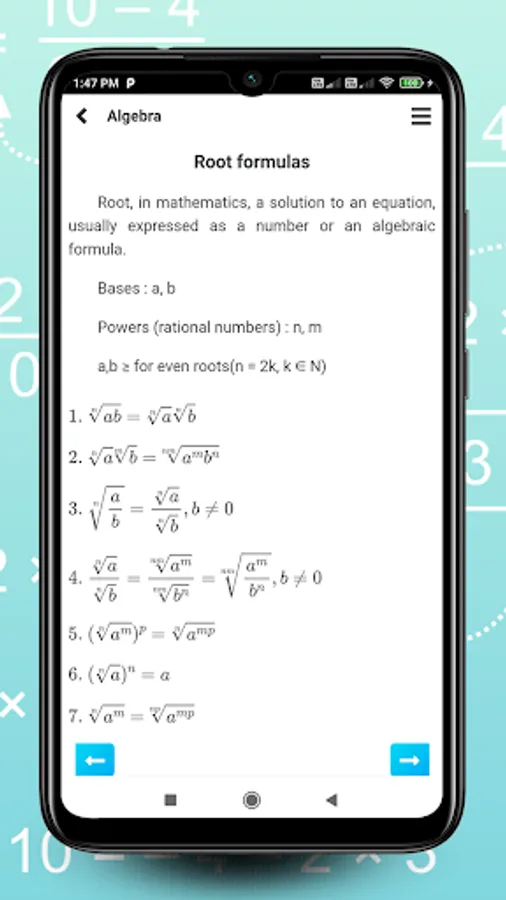 All essential Math Formula for all android users. Offline content. You don't need the internet to read formulas. In this geometry formula app, you will get 1000+ math formulas and equations. With formula, you will get a proper diagram, so that you will understand the formula easily. You can read various equations easily from this app. These are very useful maths formulas that serve as a quick reference. You will not forget maths formulas anymore. This app is everything you need. The perfect app for college and high school students. You will find everything about mathematics in it.