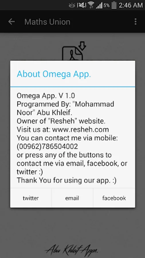 The application of the Federation of Students Department of Mathematics, Team Omega, the University of Jordan in 2015