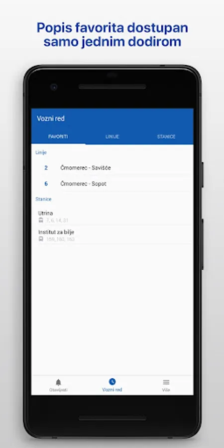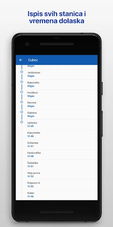 It also contains a list of all announced works, changes in traffic, time of arrival of vehicles at the station in real time, tram and bus timetables, station locator and reports of difficulties in ZET traffic by users.