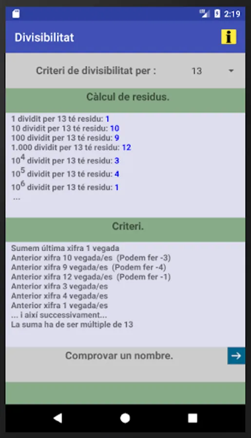 Calculates waste powers 10 and determines the divisibility rule number one in terms of waste. Presents the results of the divisions in cash applying this criterion numbers from 2 to 115.