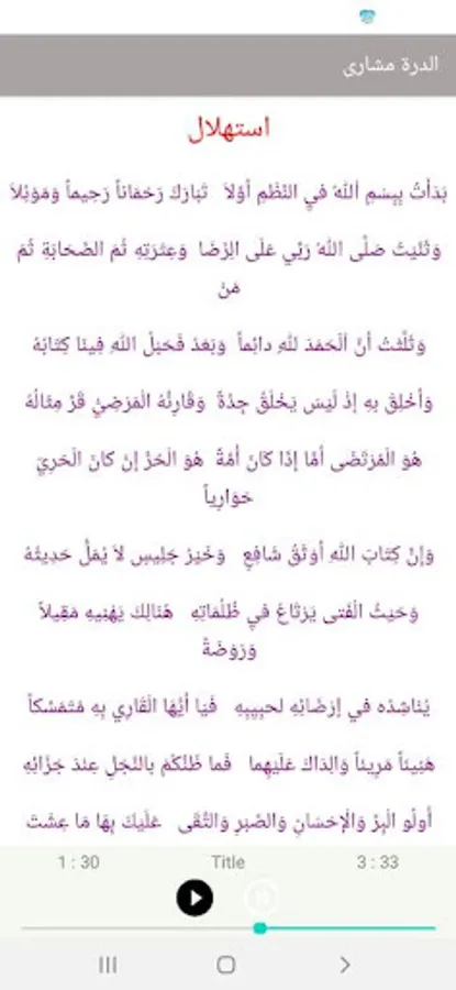 The text of Al-Durra Mishary Al-Afasy without the Internet, reading and listening to teach readings