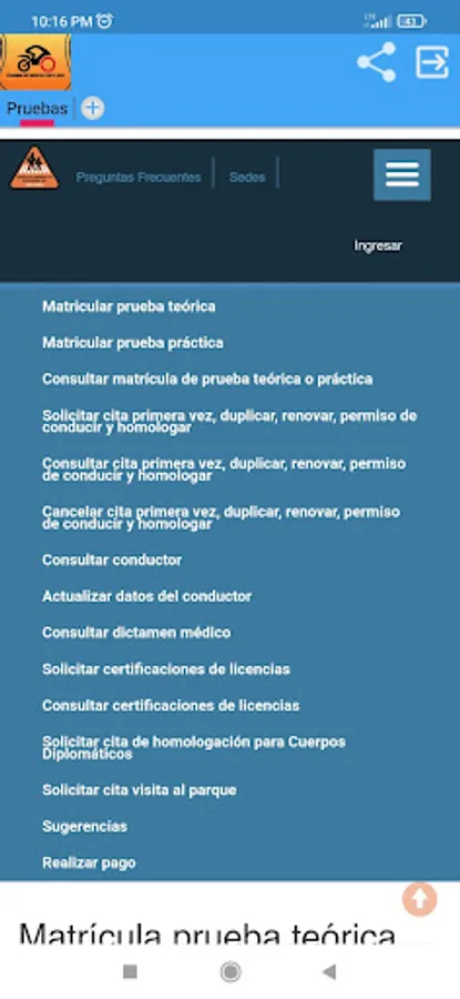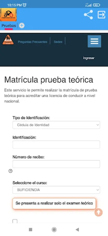 You will be able to register for the driving tests in Costa Rica. The application is easily accessible and works in the same way as the standard procedure. However, with the application you avoid using the search engine and going directly to the license plate menu