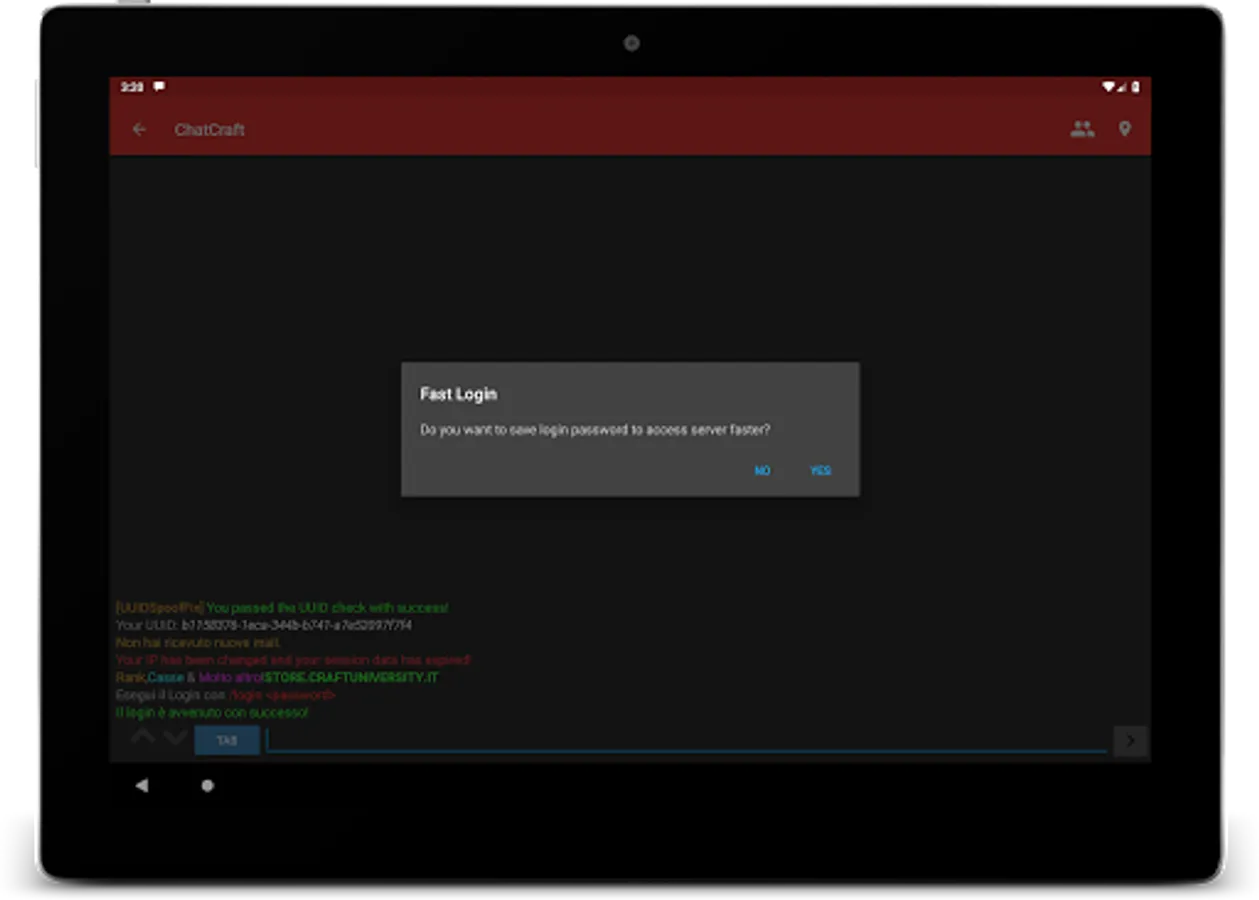 • Auto login or register: ChatCraft can remember the password you use on non-premium servers so you can login even faster!