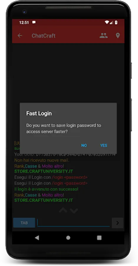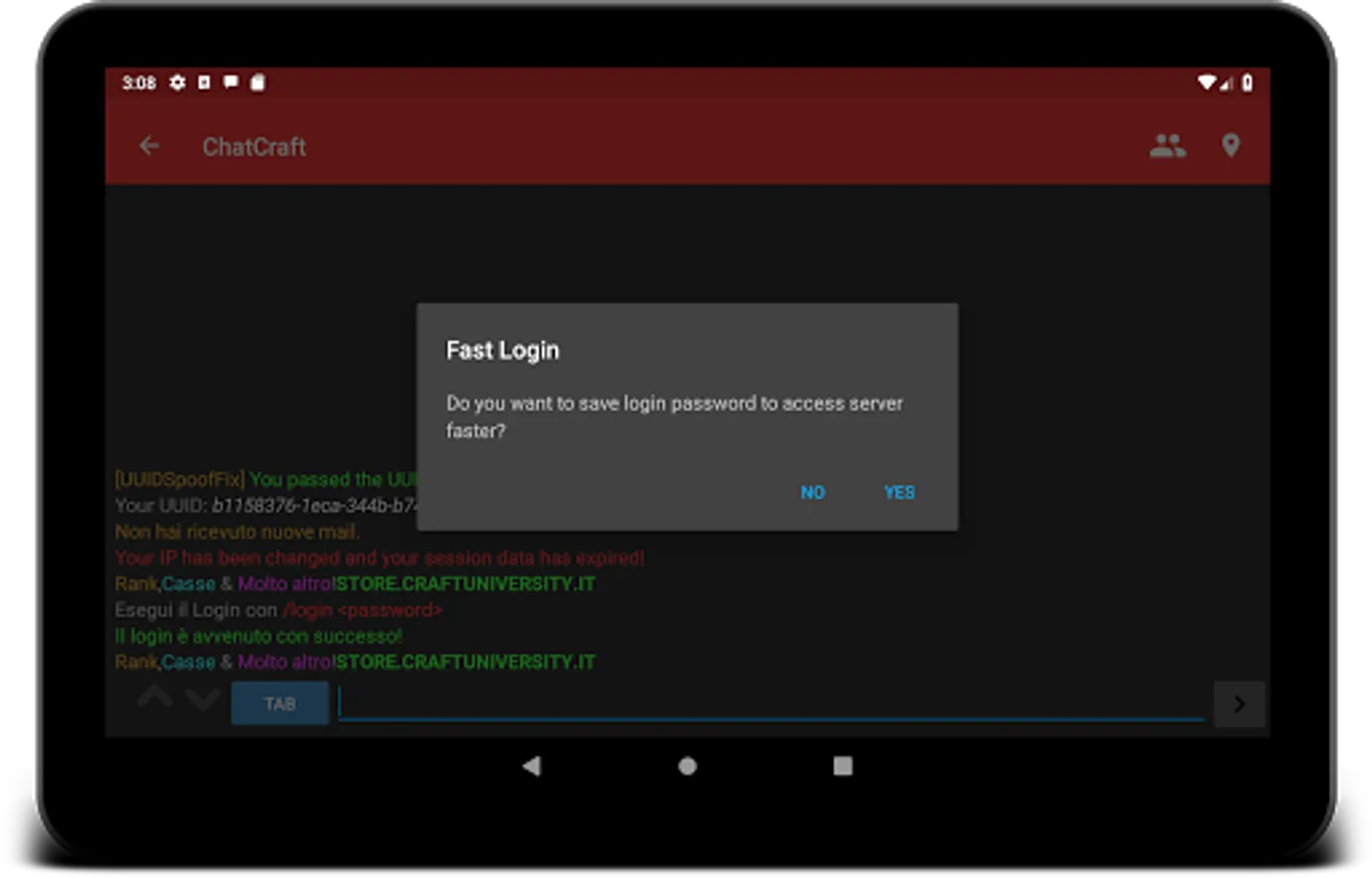 • Auto login or register: ChatCraft can remember the password you use on non-premium servers so you can login even faster!