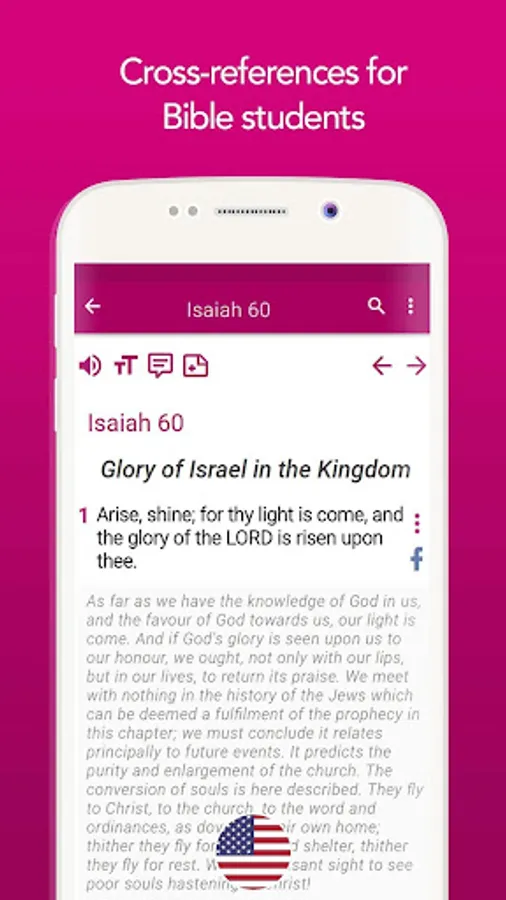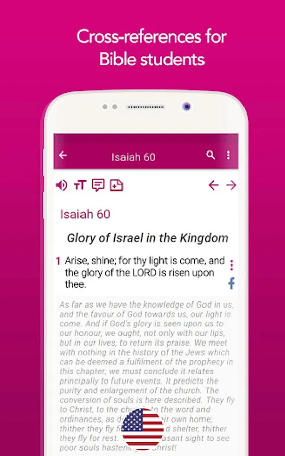 Download this app for free to have access to the most renowned English Bible. King James Version, enriched with comments and notes by Matthew Henry that explain the meaning of the verses.
