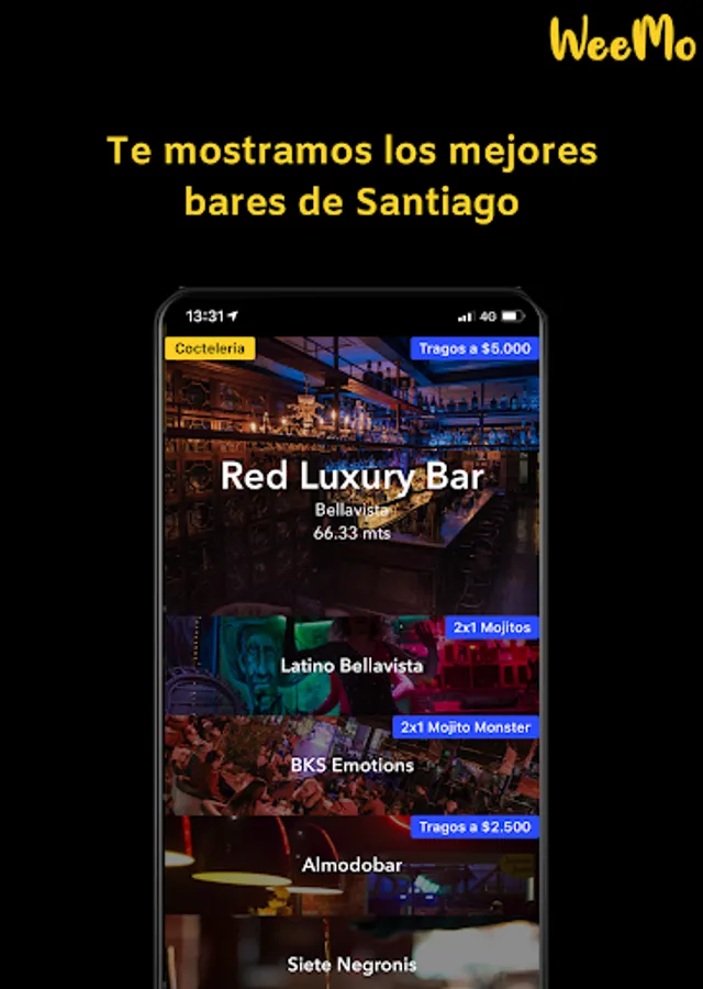 Weemo allows you to enjoy a free daily drink in the coolest bars in Santiago.