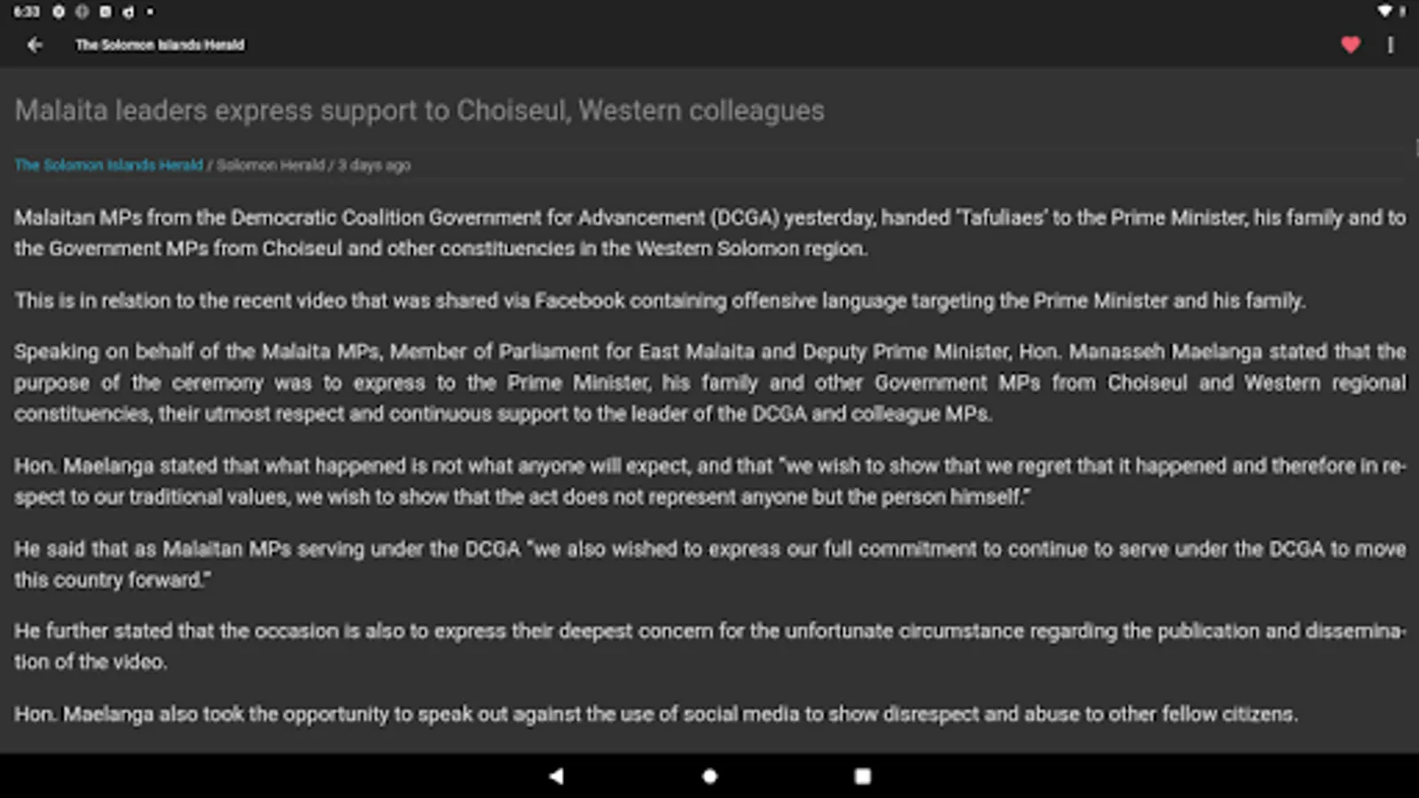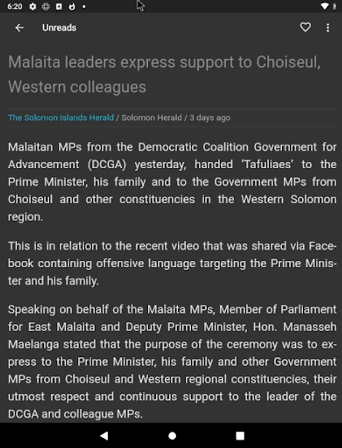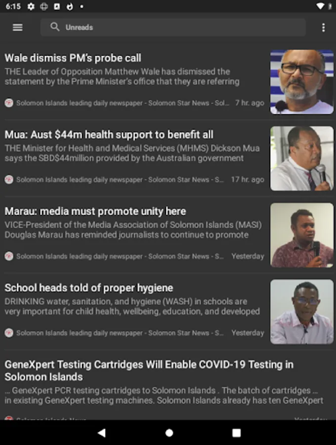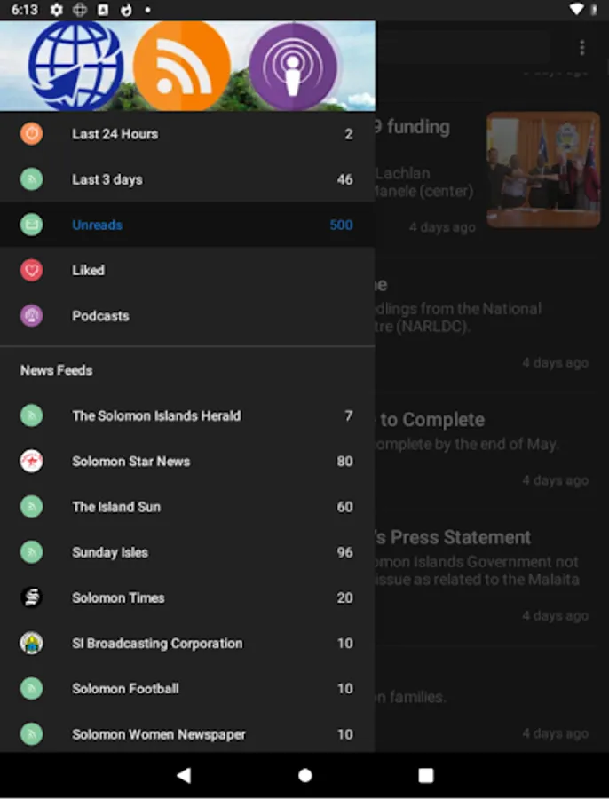 The latest news app, for web feed that allows you to access updates of what is happening in and around the Solomon Islands—neatly laid out with the latest 24 hours/latest three days news, unread news and podcasts tabs.