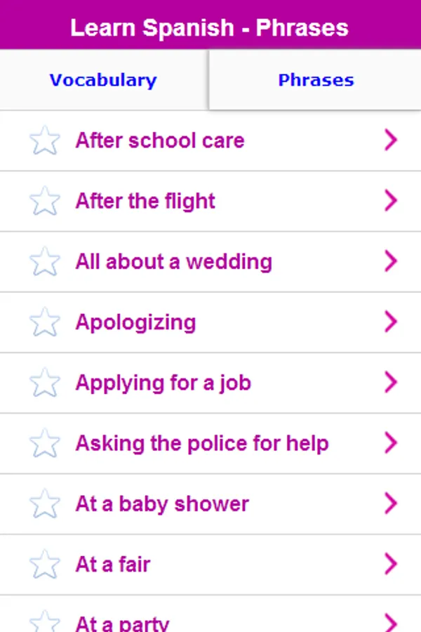 This app contains over 7000 words and phrases and divided in 200 sections,