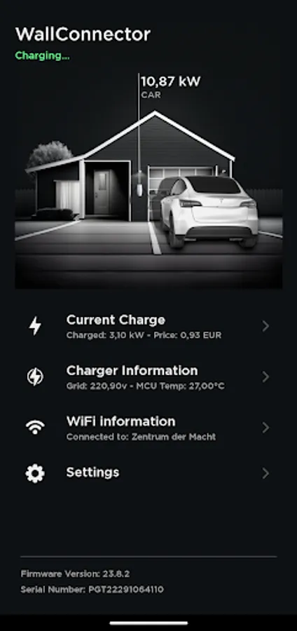Important: This app works only for the gen3 WallConnectors as previous generations do not provide an API via wifi!