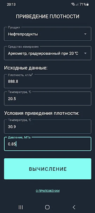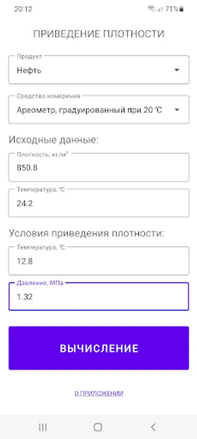 In fact, this is an android version of the PC program "Reducing the density of oil and oil products", developed by FSUE VNIIR.