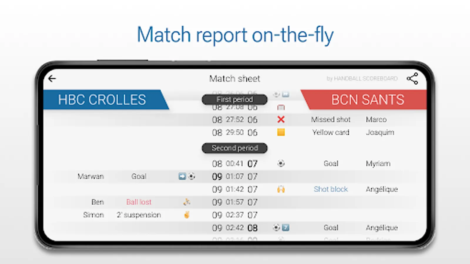 🤾♂️ Create your teams, launch the chrono and start recording every action of the match in real time