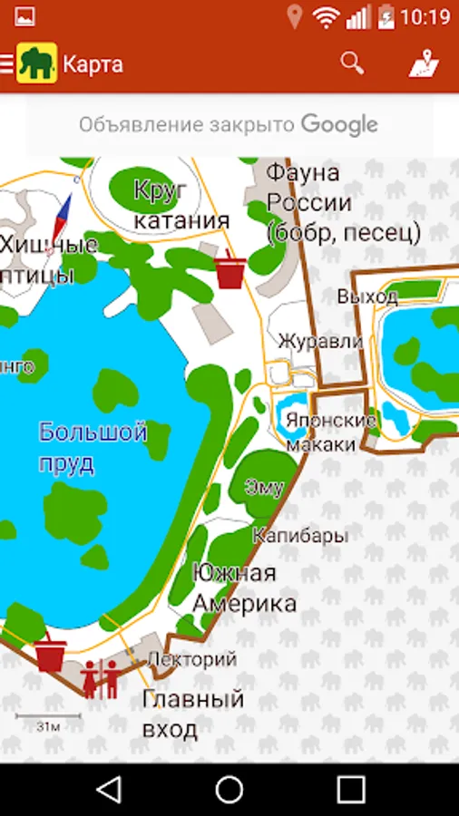 The app contains an interactive map, schedule of feeding the animals and the news section of the zoo.