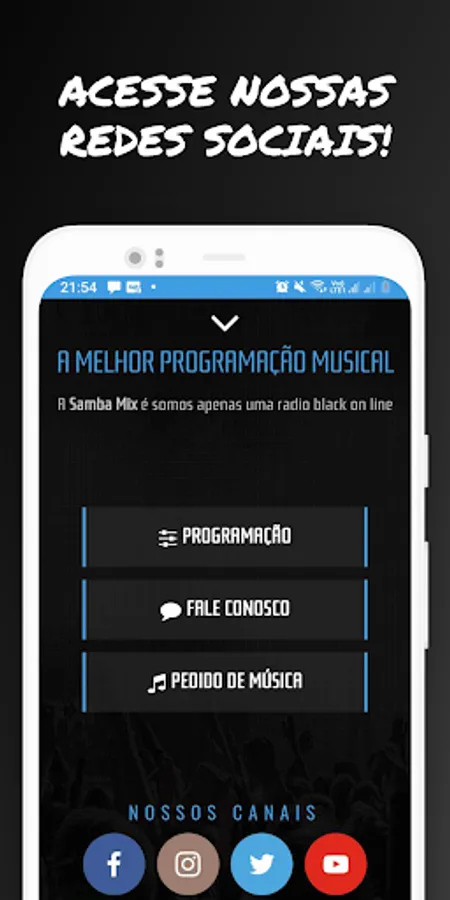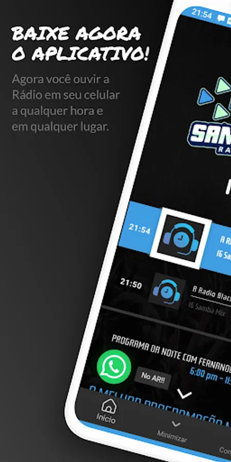 Now you can also listen to our Radio on your cell phone or Tablet with Android system, click on the PlayStore icon on your smartphone and look for the "Samba Mix" application, install and listen to our Radio anywhere. Enjoy this new option, and listen to us directly from your Tablet or Smartphone.