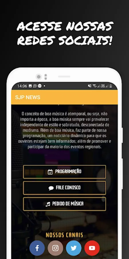 Now you can also listen to our Radio on your cell phone or Tablet with Android system, click on the PlayStore icon on your smartphone and look for the "SJP News" application, install and listen to our Radio anywhere. Enjoy this new option, and listen to us directly from your Tablet or Smartphone.