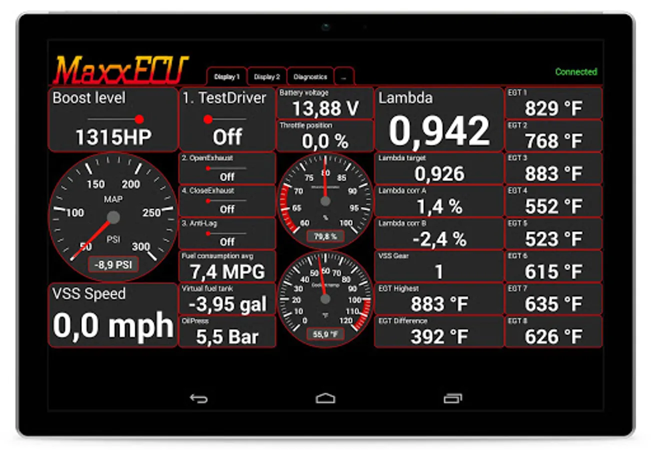 MDash is our free Android app that allows MaxxECU Bluetooth enabled units to monitor and make real-time adjustments. Wireless connectivity through Bluetooth.