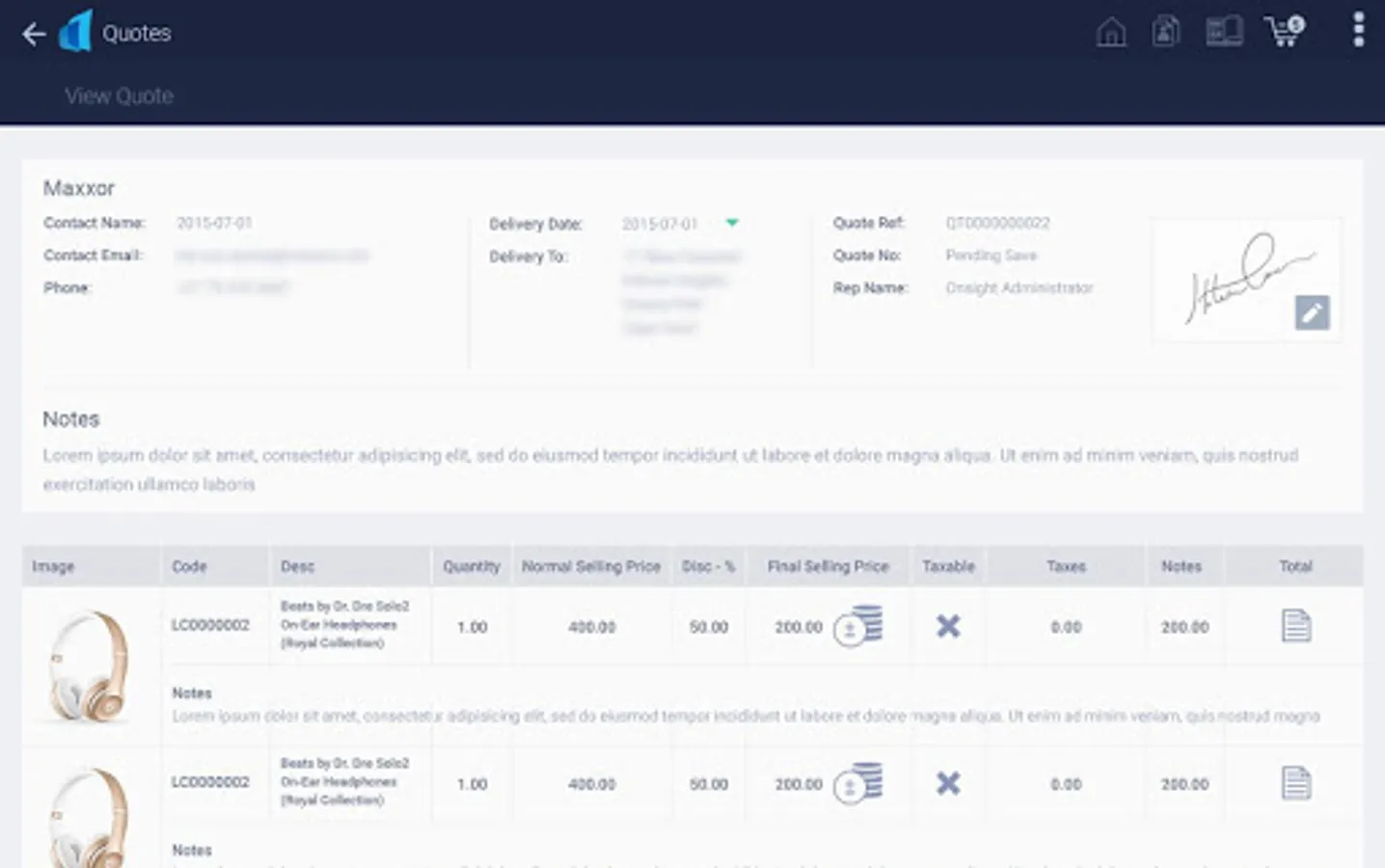 * Create PDF documents of both quotes and orders to immediately send to clients for approval