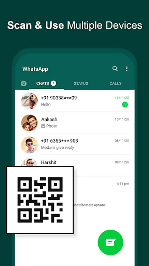 Whats web dual QR code scanner app automatically updates and syncs all the chat from your linked Whatsapp account with QR code scanner. Using it, you can read all the messages and replay them easily and you can open two accounts on the same device.