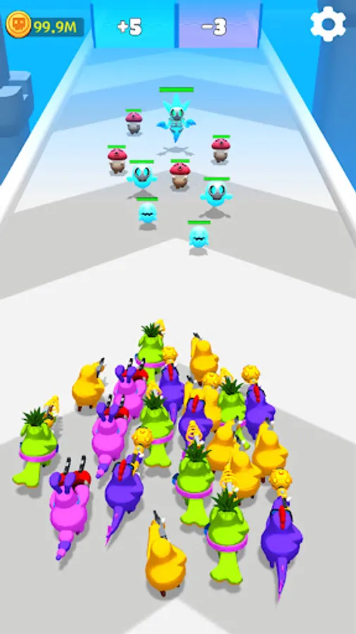 You can pass through different doors to form a crowded army of Guys, and reach the end to defeat the little monsters. The monsters will definitely fall flat.