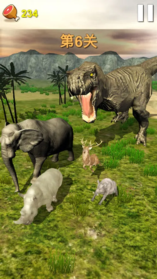In the game, you will incarnate as a Tyrannosaurus rex, control your Tyrannosaurus rex, shuttle through the primitive jungle, search for prey and devour all animals, and finally defeat other dinosaurs to become the real king.