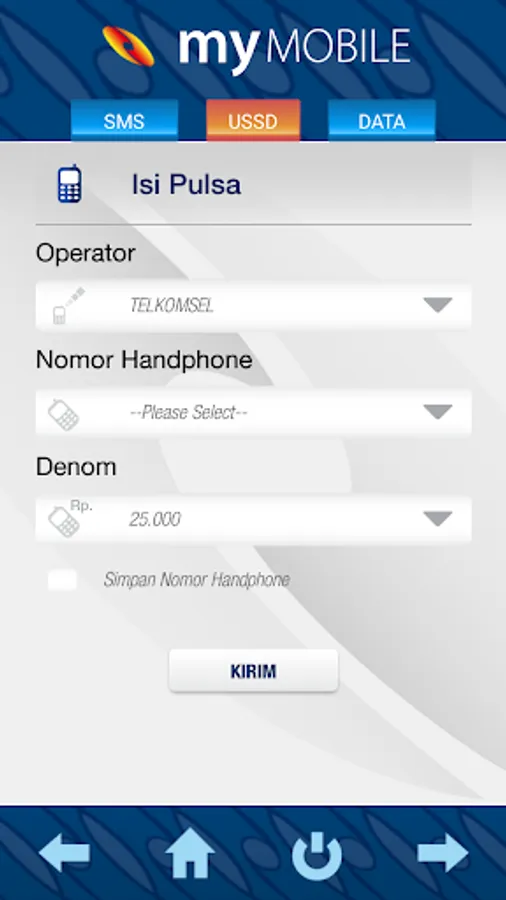 Have a particular network type preference to run your app? No Problem! You can switch between SMS, USSD or Data network to access myMOBILE.