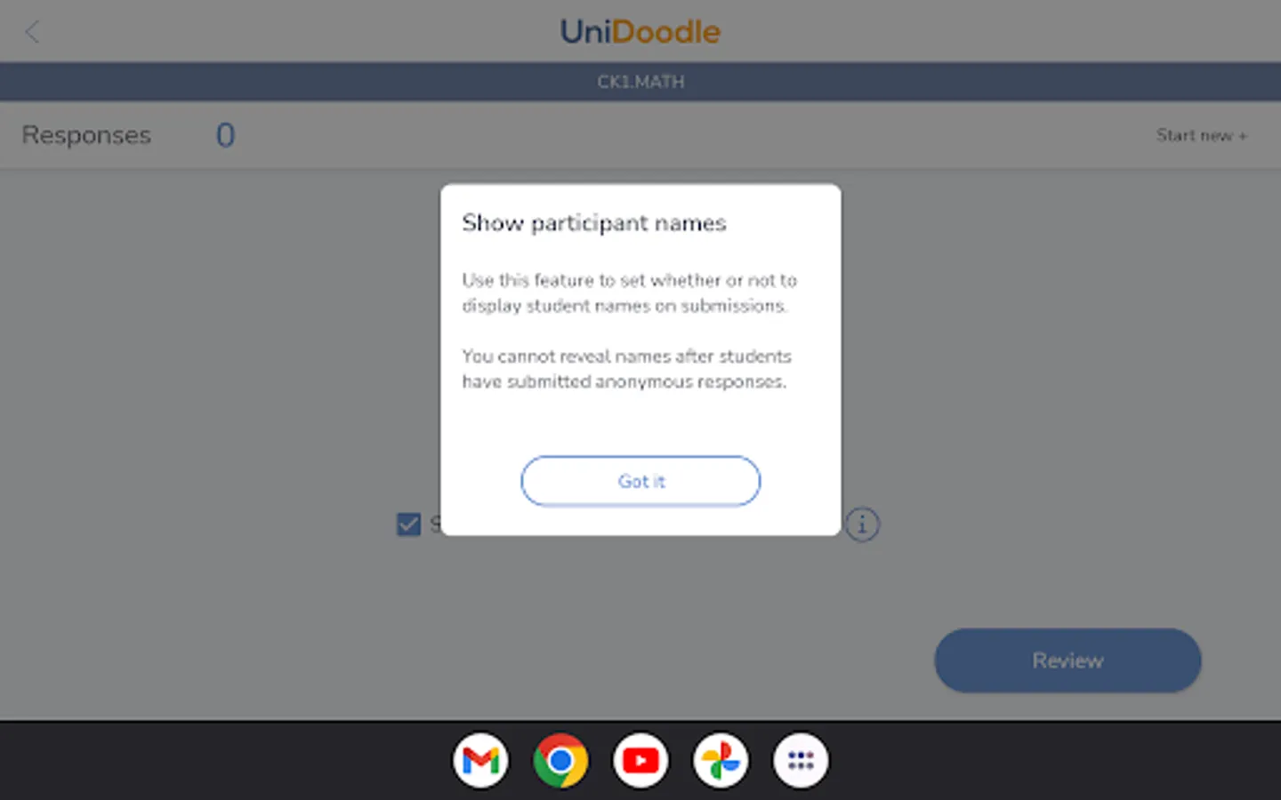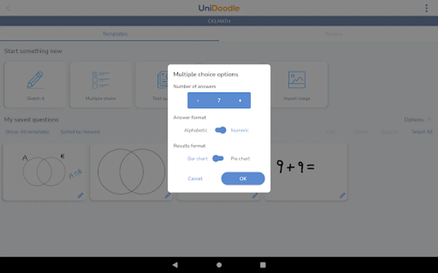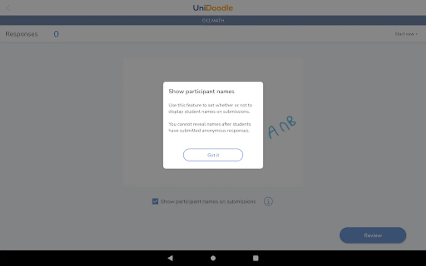 The teacher's version of UniDoodle - a classroom response system which allows students to quickly submit sketch-style answers via their Android device to questions asked by their teacher in class.