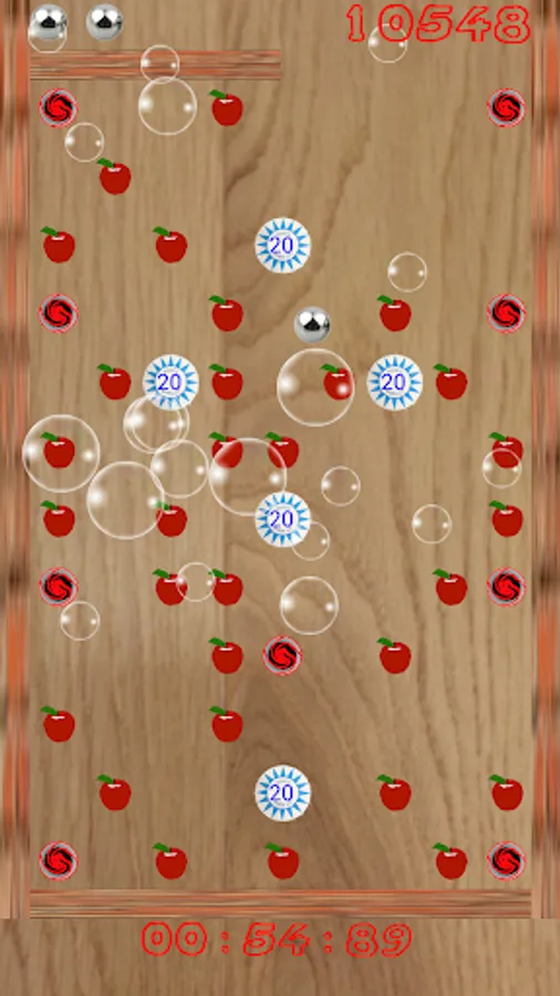 Play this ball game.Collect all the fruits with the ball but hurry up because time passes and when you have collected all this throw the ball into the appropriate hole but avoid breaking bubbles because at the end you get 100 points for each survivor