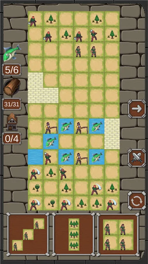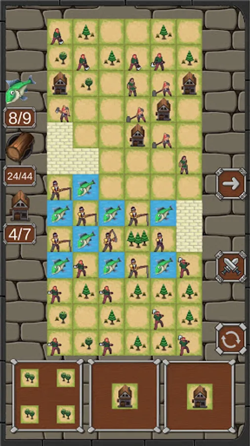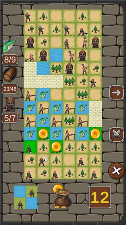 Each turn you place lakes and forests tiles on the map, give your men jobs to do such as fishing, woodcutting and building; all must be carefully thought out before being added to your kingdom. Don’t forget to balance your Chiefdom since your men need to be fed and sheltered as well as employed.