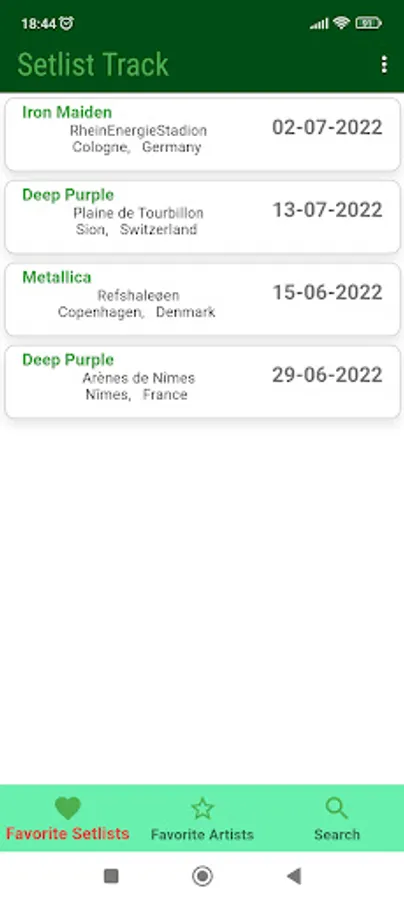 It gives you ability to search for your favorite artists or visited concerts and discover their past shows. You want to know, which songs Volbeat plays on their first shows? You want to know what will Guns N' Roses play on their actual tour? Explore the app and you will find the answers.