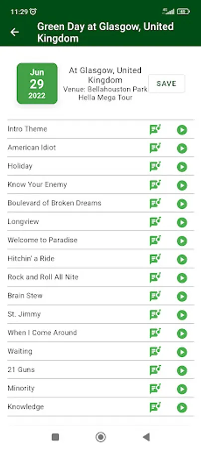 Setlist (Set List) is a list of the songs that a band intends to perform to a concert or festival