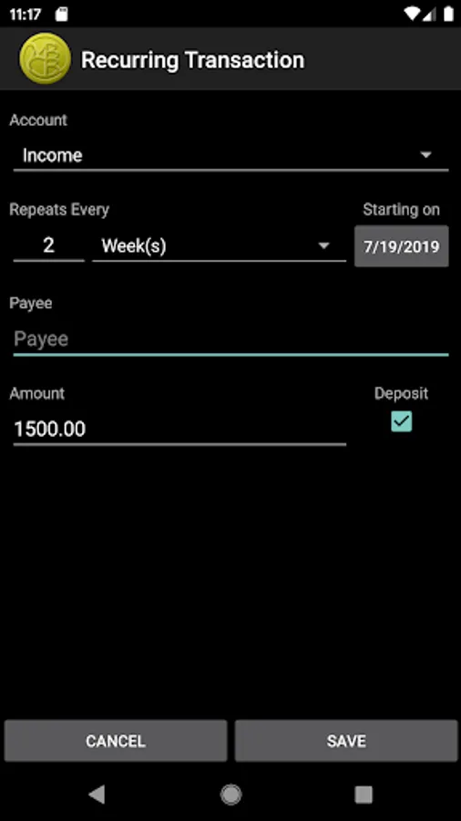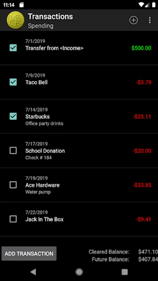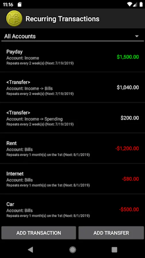 Supports multiple accounts, transfers between accounts, and recurring transactions.
