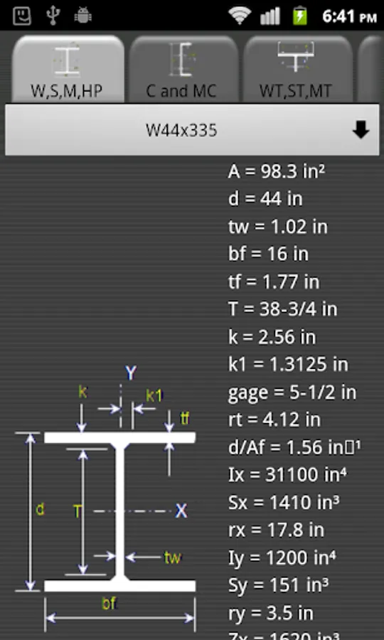 This application makes AISC Steel Table available on finger tip. Very useful for structural designer / engineer for project estimate and supervision.