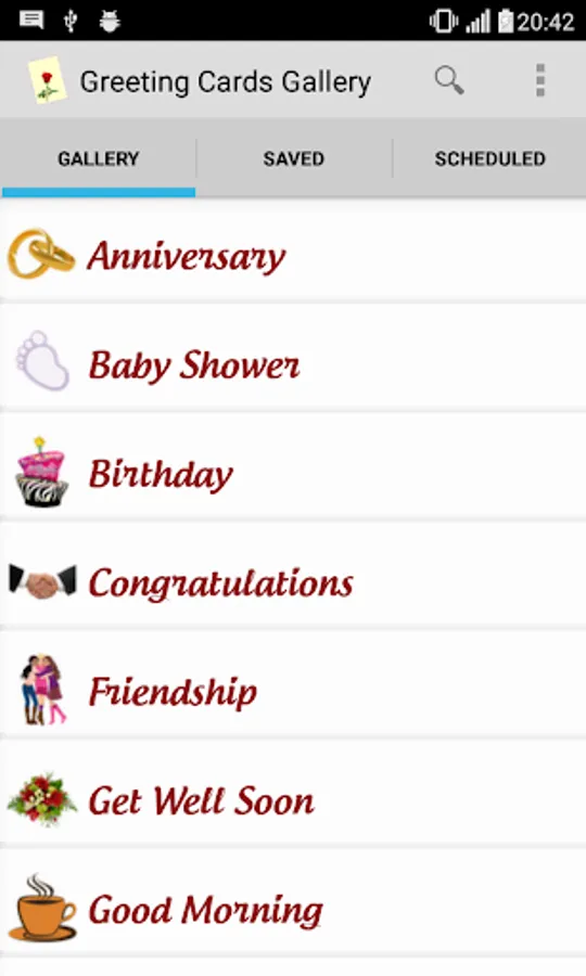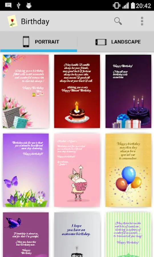 This application helps the user to select a greeting card from the gallery. A user can also edit cards by changing the background image, Stickers. Edit text message, Change font, color, and size. Cards are available in both landscape and portrait category. This app comes with Card Maker to create your own greeting cards