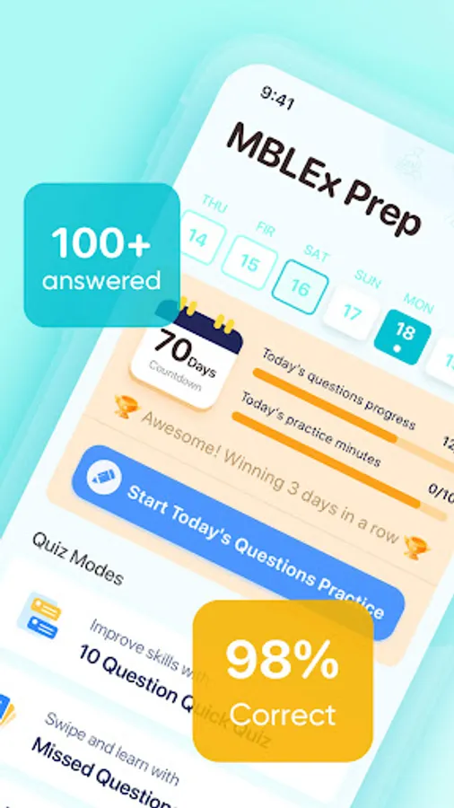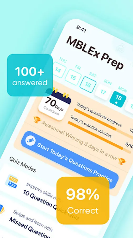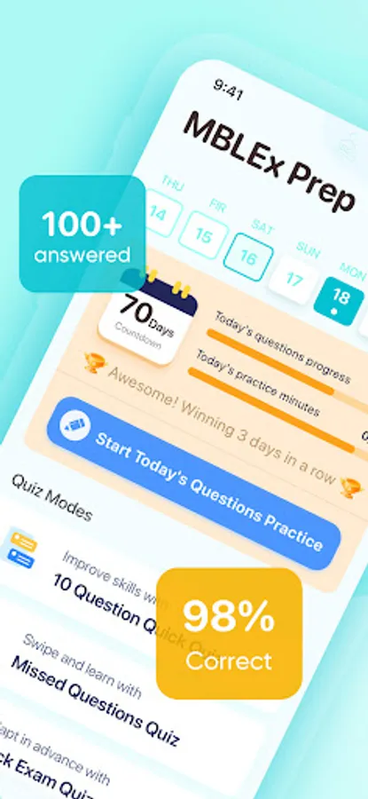 The most important part of passing the MBLEx exam is to keep practicing and not lose confidence in the exam. You will find that each time you practice on MBLEx Prep 2023, your knowledge of the exam increases, thus increasing your certainty of passing the exam.