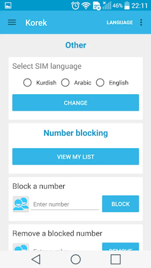 With this app, you can perform Korek operations much easier, such as: Refilling balance, sending balance, activating internet packages, blocking numbers, and more.